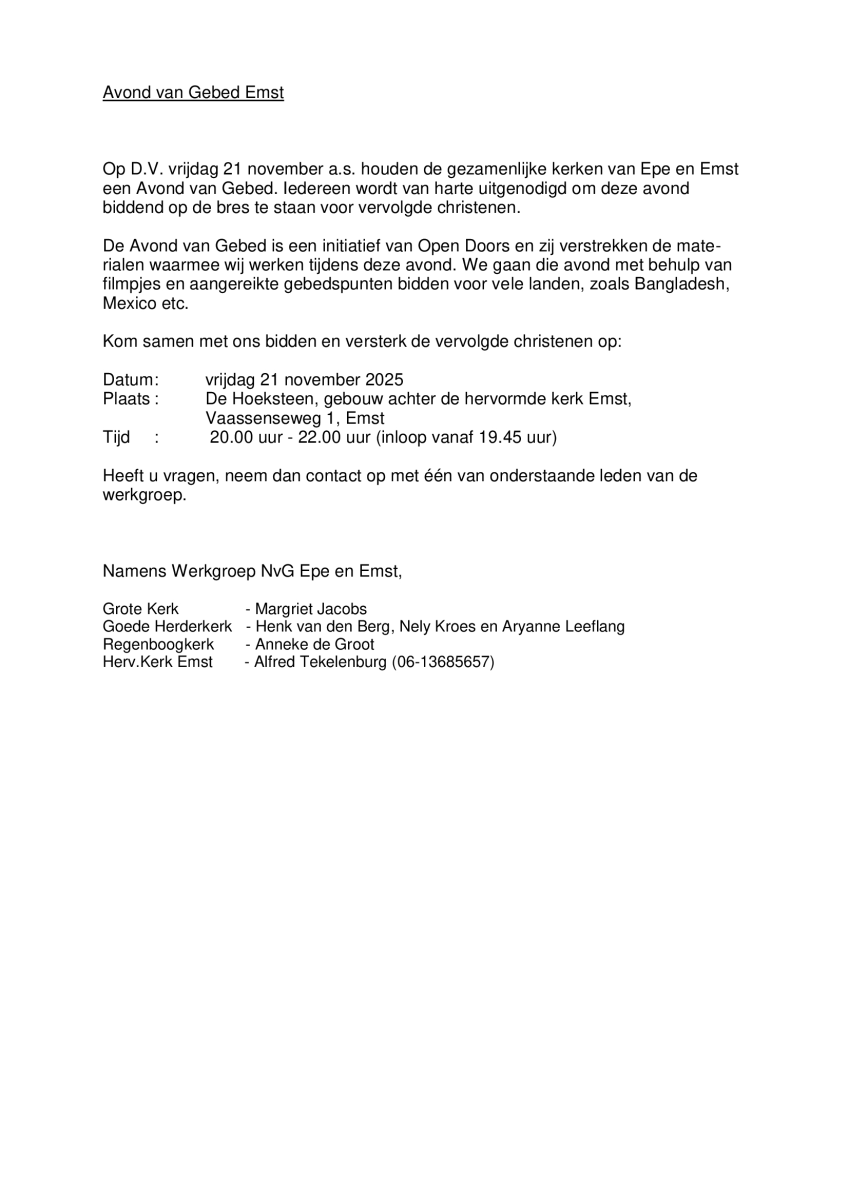 Via het college van diakenen is er een 'digitale wensboom' Hier kan iedereen, zowel van binnen de kerken als ook van buiten de kerk, een wens voor kenbaar maken. Dat kan voor voor een ander, maar ook voor u/je zelf. Kijk voor meer informatie op www.wensboomepe.nl |